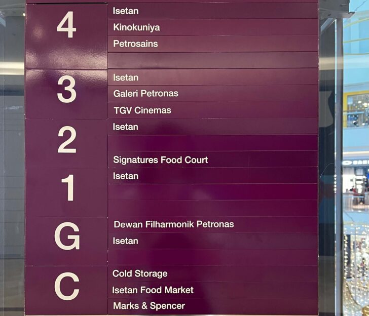スリアKLCCは地下1階から4階までの全6フロアあります。ここではそれぞれのフロアを簡単に解説します。