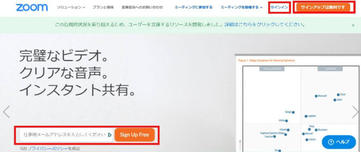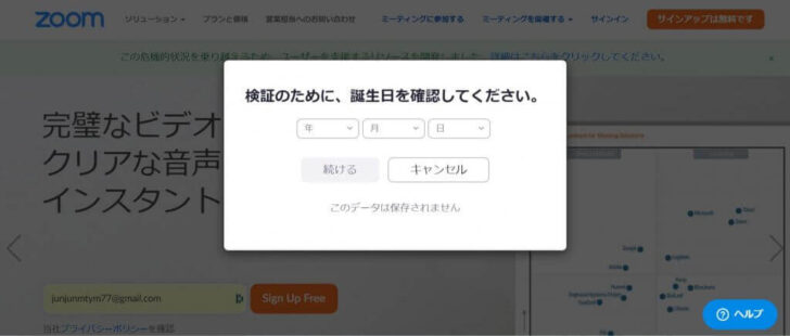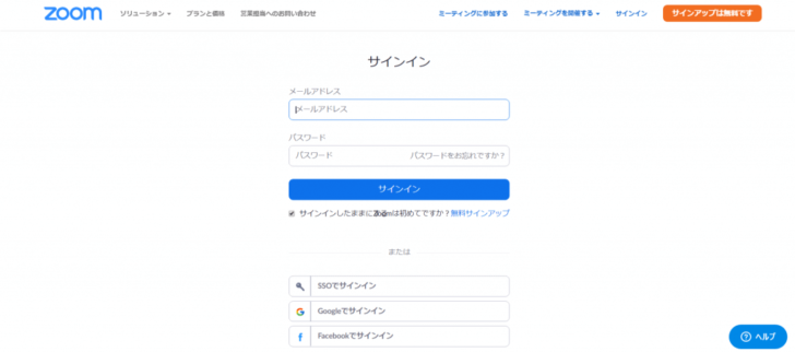 zoomの公式ウェブサイトからサインアップ。