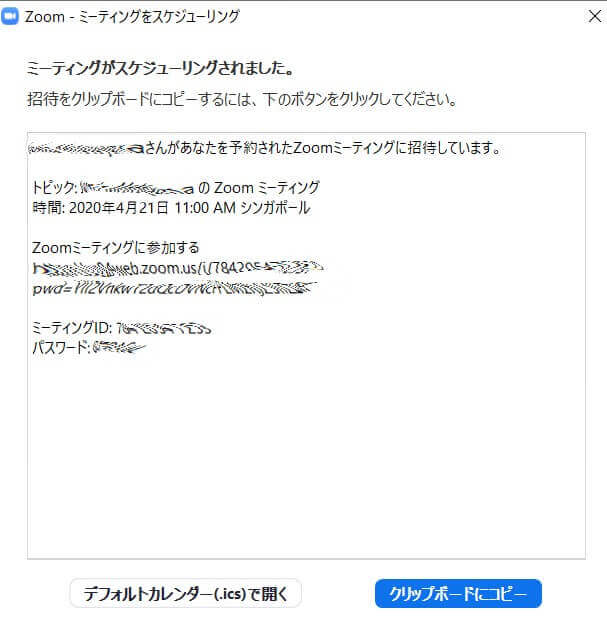 カレンダー機能が不要な場合は、「他のカレンダー」を選択。以下のような招待用の情報が表示されるので、コピぺして参加者にシェアできます。