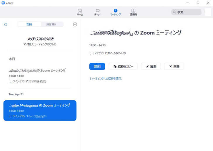 zoomのアプリケーションからミーティングを設定する