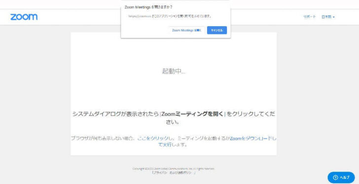 自動的にZoomミーティングアプリが立ち上がるので、「Zoom meetingを開く」をクリック。