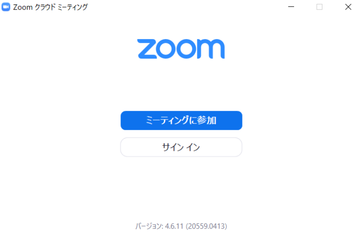 インストール完了後、Zoomのアプリケーションのアイコンをクリックすると以下のようなウィンドウが表示されます。