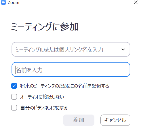 後述しますが、「URLのみ」か、「ミーティングID&パスワード」でミーティングに参加できます。