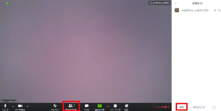 ミーティングの画面に切り替わるので、下部にある「参加者の管理」をクリック。