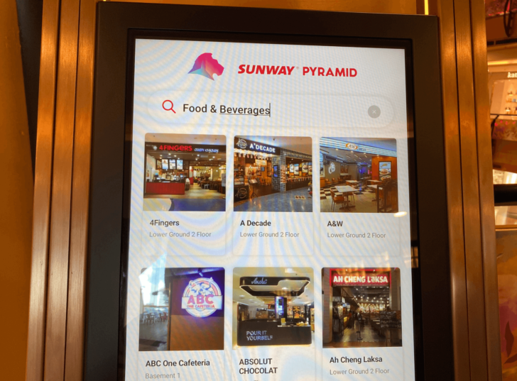 サンウェイピラミッドはとても広いので目当ての店を探すのが大変ですが、各フロアのエスカレーター横にはディクショナリーが設置されています。お店を検索するだけでなく、現在地からの行き方も表示してくれるのでぜひ使ってみてください。