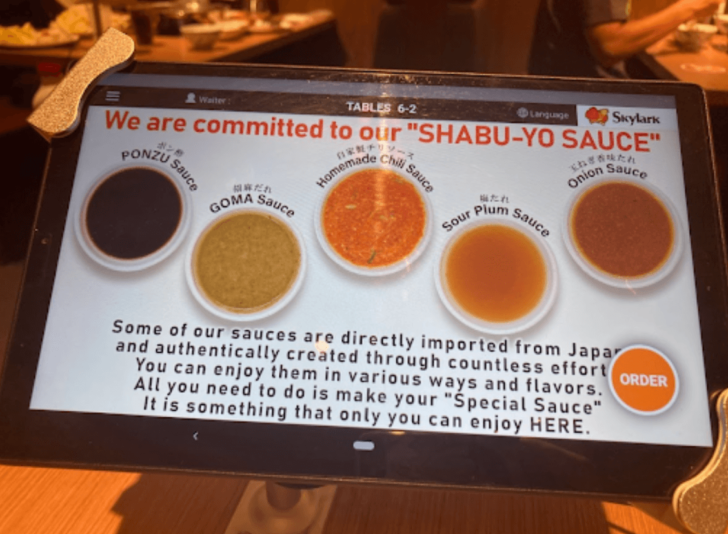 たれの種類も豊富で、自分の好みのタレをつくることができます。今回はすき焼きのスープを選んだので、海外在住者の憧れでもある、低温殺菌済みの生卵につけて頂きました!