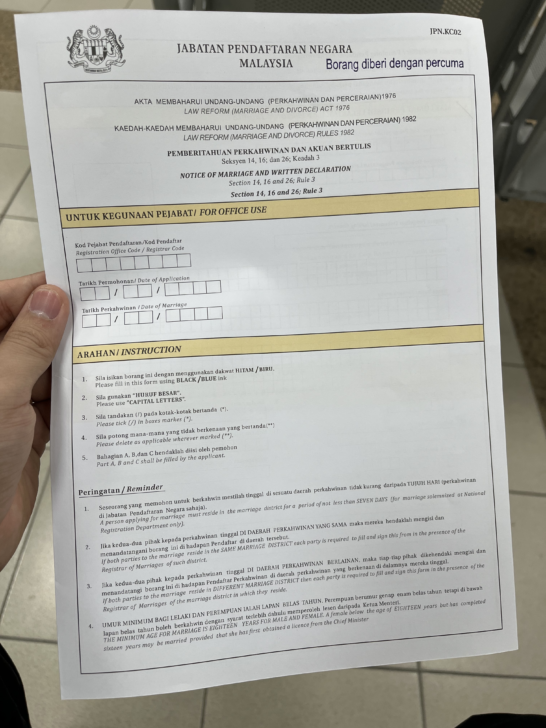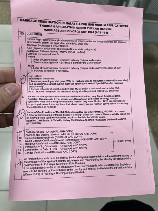 ここではイスラム教徒でないマレーシア人とマレーシアにおいて結婚する場合の手続きと流れの詳細を共有します!