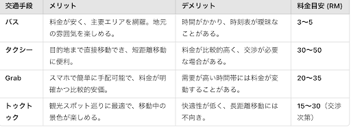 初めてペナン島を訪れる際、移動に不安がある場合は、多少料金が高くても目的地まで確実に連れて行ってくれる配車アプリの利用をおすすめします。