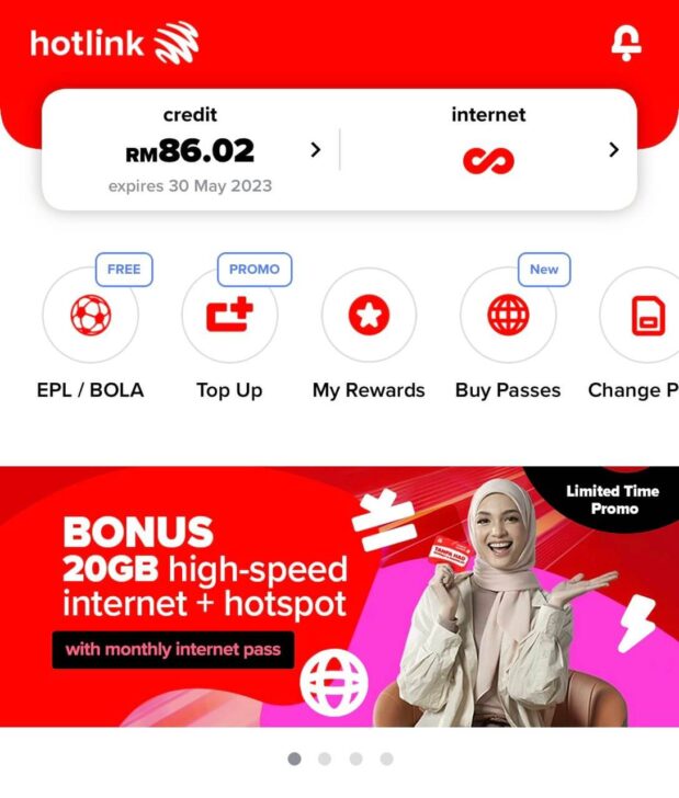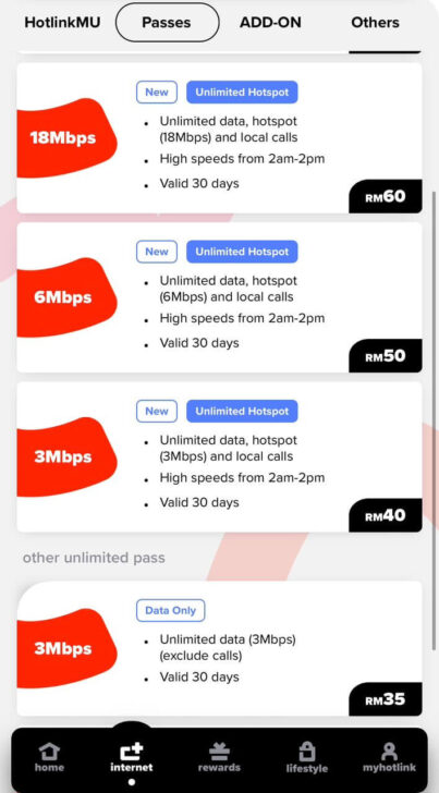 Maxis(Hotlink)の実際のアプリ画面を使用して紹介させていただきます。