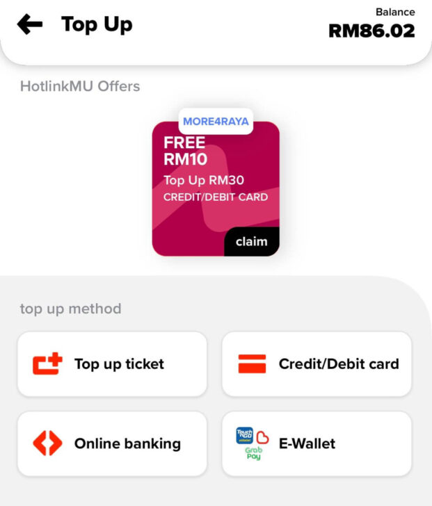 Top Upの方法は上記から、Credit / Debit card もしくは、Online banking, E-Walletから支払い方法を選択することが可能です。